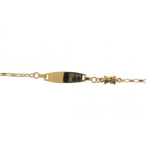 14Kt Yellow Gold Oval Link ID Bracelet with Teddy Bear Charm (3.40gr)