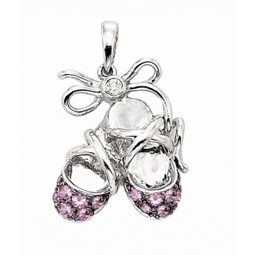 14Kt White Gold Diamond & Pink Sapphire Ballet Slippers Enhancer Charm Pendant (0.26cts tw)