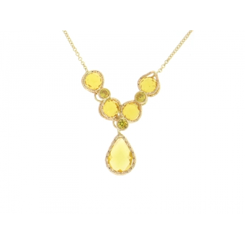 14Kt Yellow Gold Oval Link Necklace with Briolette Citrine (4.90gr)