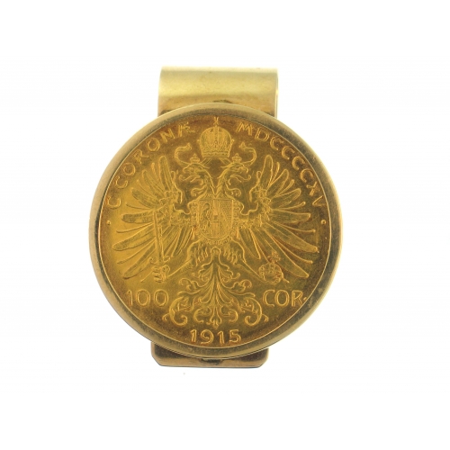 14Kt Yellow Gold Money Clip with Hundred Corona Coin (17.20gr)